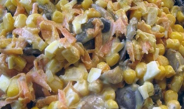 - Salade aux champignons en conserve, maïs et cornichons