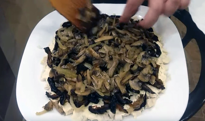 - Salade aux champignons et pruneaux en conserve hachés: recette avec photo