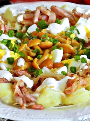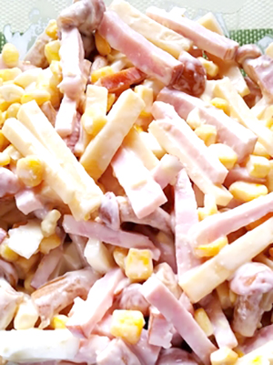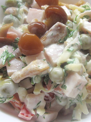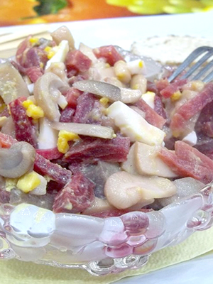 - Délicieuse salade aux champignons marinés, jambon et cerise: recette avec photo
