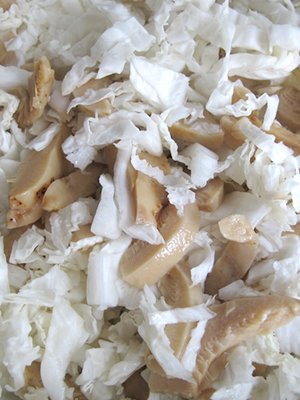 - Salade cuite au chou et aux champignons marinés