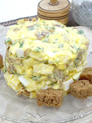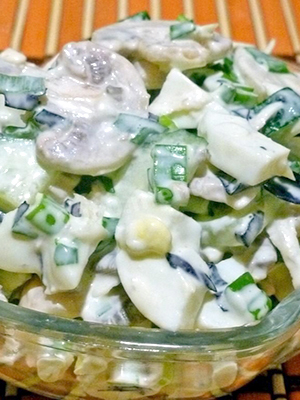 - Comment faire cuire une salade avec des champignons marinés et des œufs