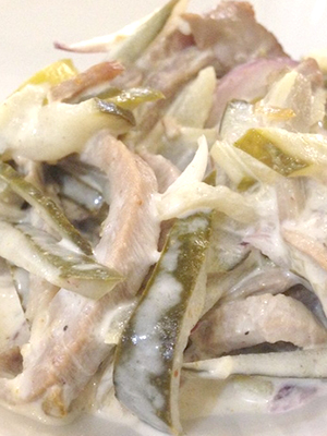 - Salade de champignons marinés et poitrine de poulet fumée