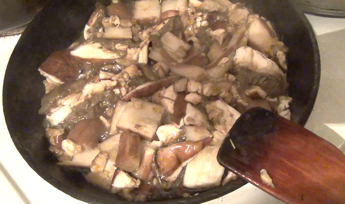 Faites tremper les champignons dans l'eau pendant 8 heures, faites-les cuire dans une petite quantité d'eau et passez-les dans un hachoir à viande.