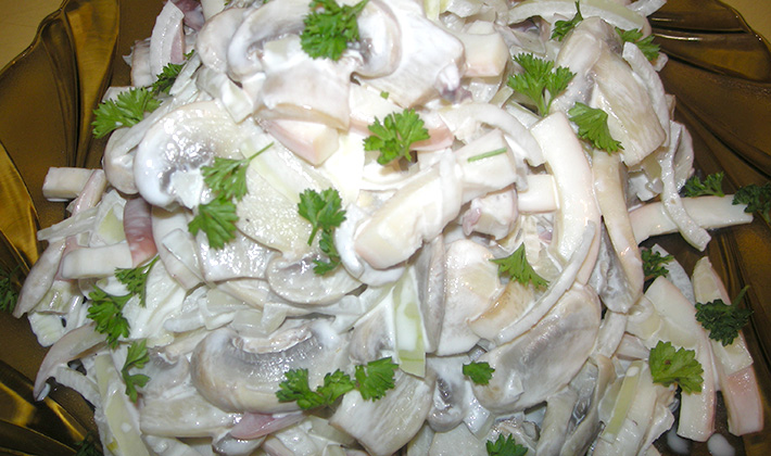 Salade de champignons blancs à l'oignon