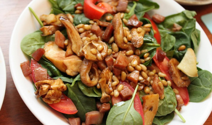 - Salade aux champignons porcini frits et au poulet