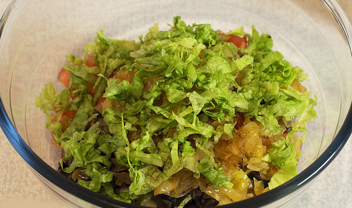 - Encore une fois, mélangez bien le tout, mettez-le dans un saladier et décorez-le de verdure.