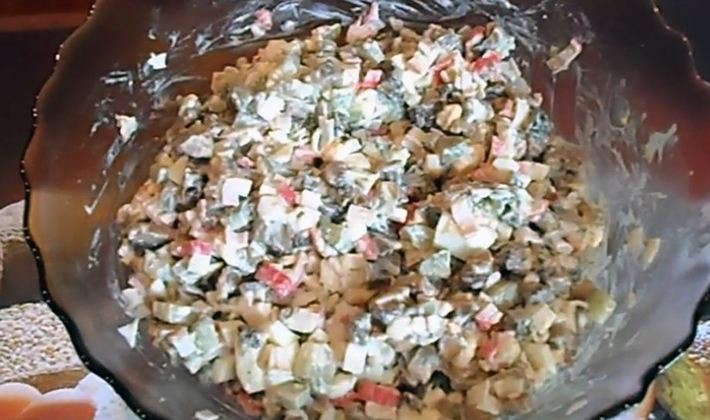 Une salade de crabe cuite avec des champignons en conserve ne laissera personne indifférent.