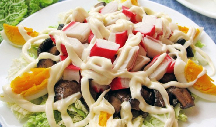 Croyiez-vous que les bâtonnets de crabe sont le seul ingrédient essentiel d'une salade? Nous vous proposons de cuisiner chez vous une délicieuse salade avec des bâtonnets de crabe et des champignons.