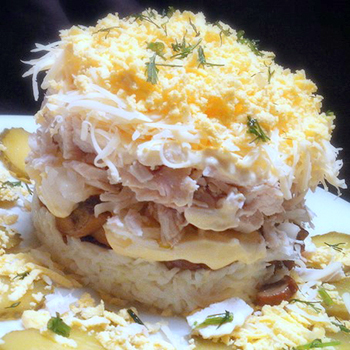 Une recette détaillée pour préparer une salade avec des champignons et une poitrine de poulet aidera à gérer rapidement et correctement le processus.