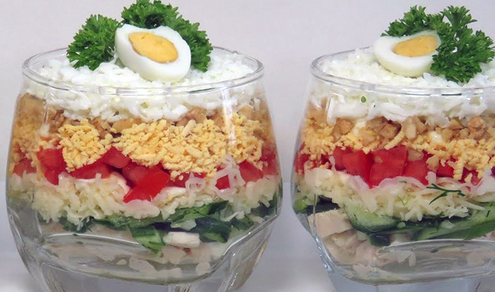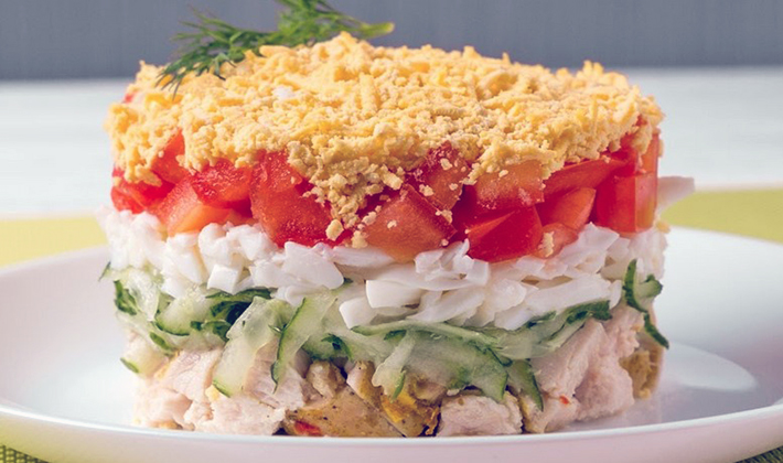- Salade de poitrine de poulet, œufs, champignons, champignons et concombres