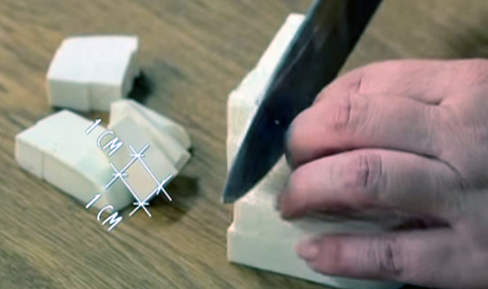 - Couper en petits cubes et mettre dans une assiette séparée.