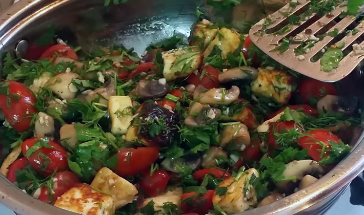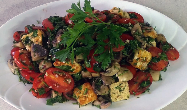 Salade de poitrine, champignons et fromage feta