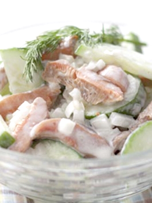 Vous pouvez préparer une salade de champignons frais au safran à la place d'une salade de champignons marinés, puis ajoutez plus de concombres salés au plat. La salade est non seulement savoureuse, mais aussi saine.
