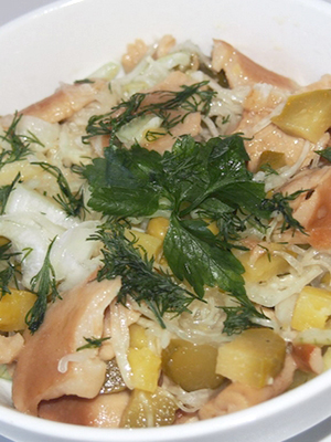 Salade de champignons salés et pommes de terre