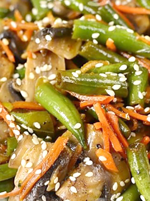 - Séparément, faites cuire les légumes dans l'huile végétale jusqu'à ce qu'ils soient cuits, puis mettez-les dans les champignons.