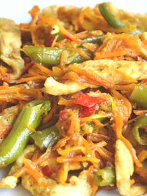 - Hacher finement avec un couteau et mélanger avec du poulet.