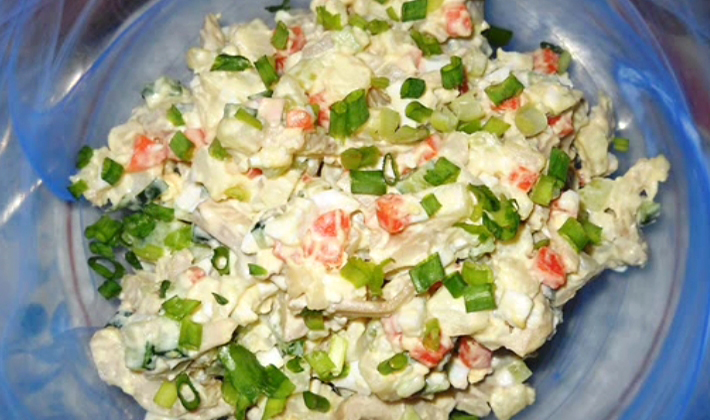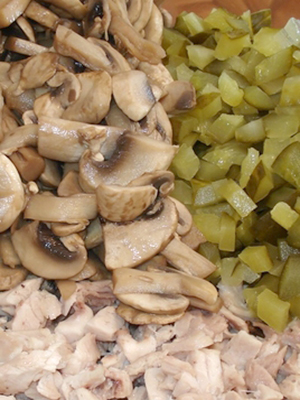 Si vous voulez faire une simple salade, utilisez des champignons, des œufs, des oignons et de l’huile végétale. Si vous préférez, ajoutez des pommes de terre, du poulet, du maïs et de la mayonnaise.