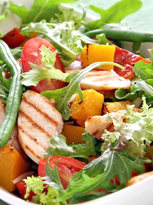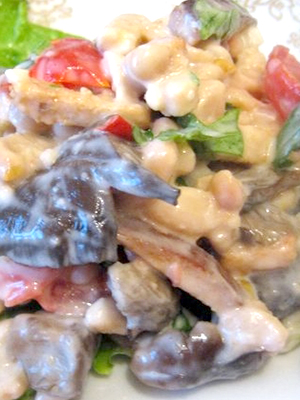Salade copieuse aux champignons safran salés et au poulet
