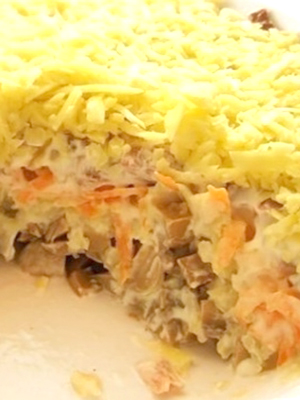 - Salade de champignons safran avec des cornichons sous un manteau de fourrure