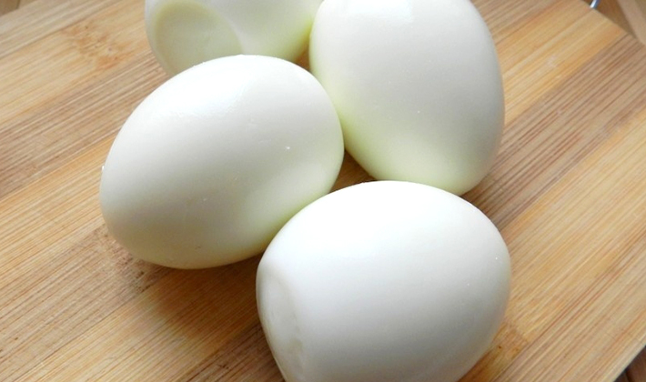 - Cuire les œufs pendant 10-12 minutes, verser de l'eau froide et, après refroidissement, peler et broyer.