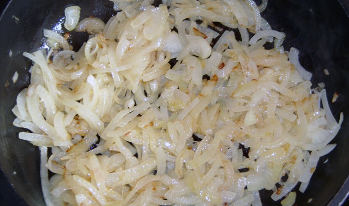 Coupez l'oignon en rondelles et faites-les frire séparément.