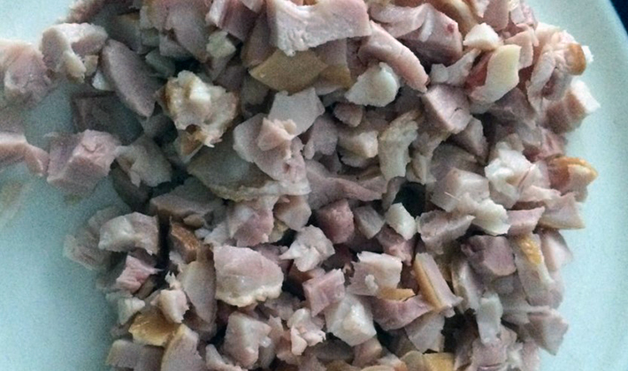 - Faire mariner le poulet pendant 30 à 40 minutes dans 1/3 de la sauce préparée. Faites frire le filet dans une poêle bien chauffée des deux côtés jusqu'à ce qu'il soit doré. Mettre au four pendant 7 à 10 minutes, selon l'épaisseur de la pièce. Laisser refroidir et couper en tranches.