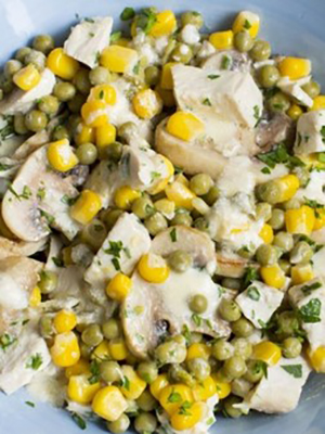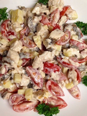 - Salade aux champignons, maïs, pommes de terre et poitrine de poulet
