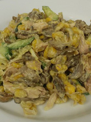 - Salade de champignons aux champignons, maïs, concombre et oeuf