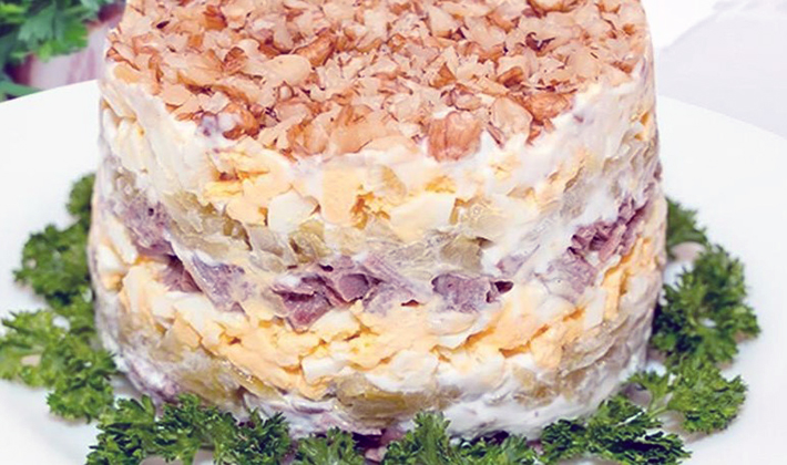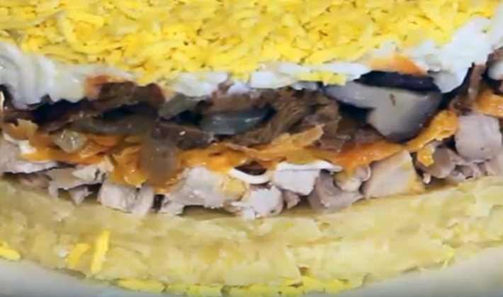 - Recette de salade feuilletée «tsar» aux champignons et au poulet fumé