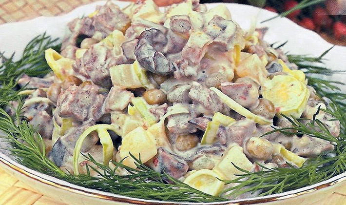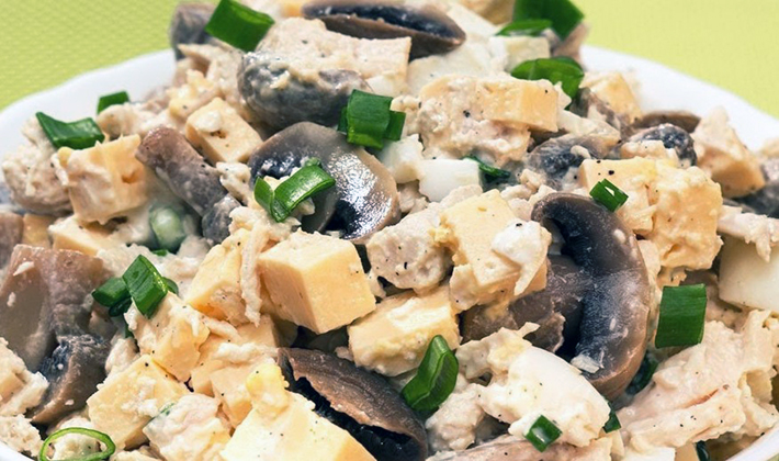 Si vous et votre famille en avez marre d'Olivier ou de Mimosa, préparez une délicieuse salade d'Obzorka au poulet et aux champignons.