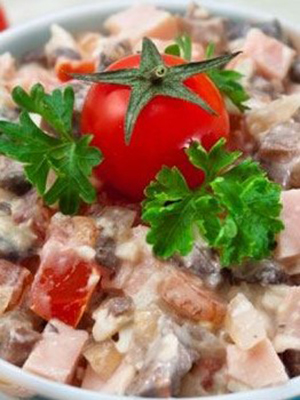 Les salades font partie intégrante de la table de fête. En outre, de nombreuses femmes au foyer préparent ce plat tous les jours, en essayant de faire plaisir à leur famille avec des plats délicieux. Les salades aux champignons et au jambon sont nutritives et ont un goût excellent. Ils peuvent être servis pour le déjeuner comme deuxième plat ou pour un goûter.
