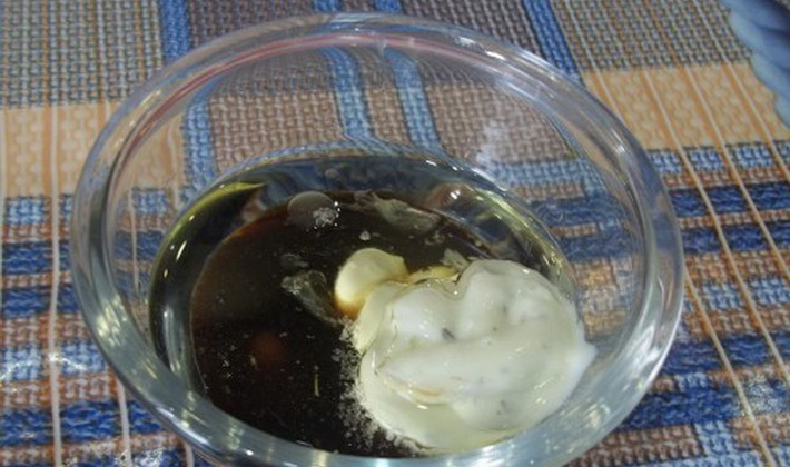 - Lorsque ces composants de la sauce sont fouettés dans un mélangeur, ajoutez le jus de citron, la sauce soja, l'ail haché et la crème sure à la masse.