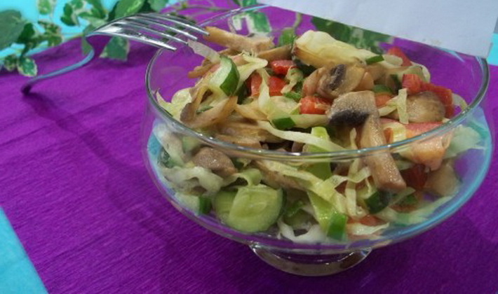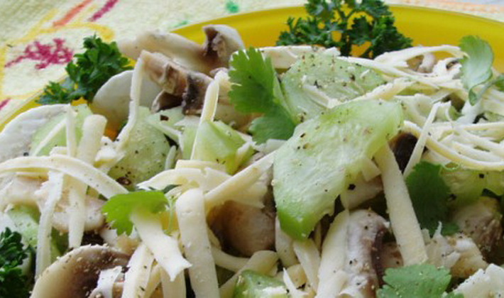 L'un des plats où ce produit populaire est utilisé sous forme non transformée thermiquement est une salade aux champignons crus, qui peut être préparée selon de nombreuses recettes.