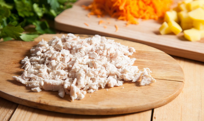 Faire bouillir une partie du poulet dans l'eau pendant 25-30 minutes.
