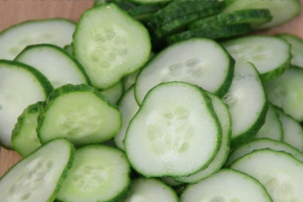 2. Coupez le concombre en fines rondelles, coupez le poivron en cubes.