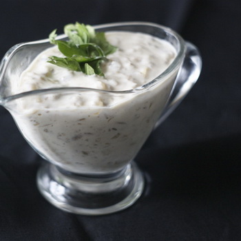 9. Avant de servir, verser la sauce dans une belle forme et saupoudrer de verts sur le dessus.