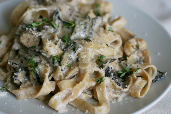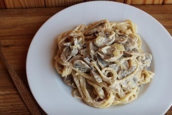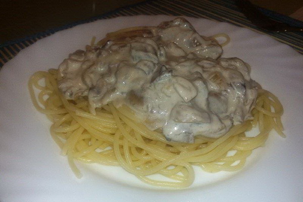 - Spaghetti sauce crémeuse aux champignons avec champignons: une recette simple