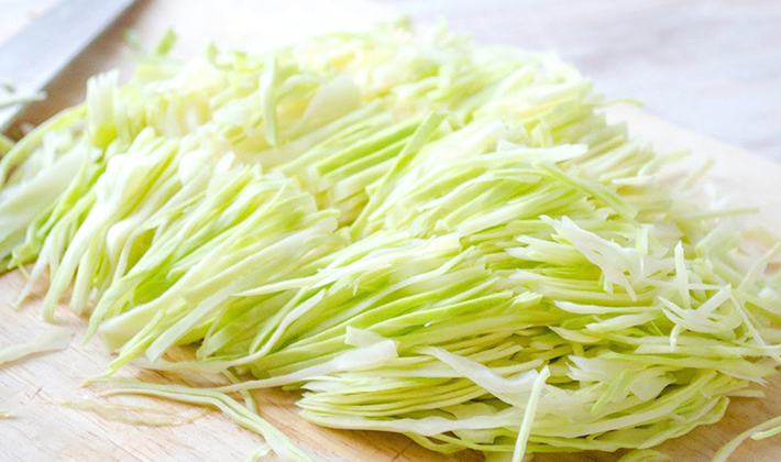 Hachez finement le chou, salez et rappelez-vous avec vos mains jusqu'à ce que le jus apparaisse.