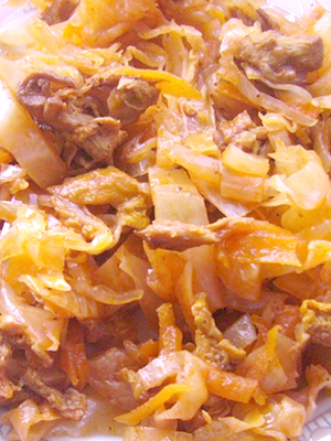 Recette pour le ragoût de méli-mélo avec les champignons séchés et le chou