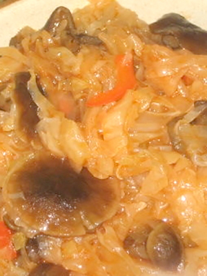 - Recette pour le ragoût de méli-mélo avec les champignons séchés et le chou
