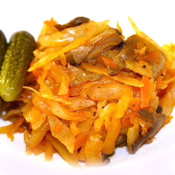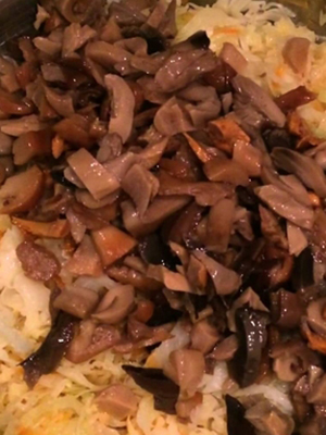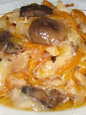 La version la plus populaire et la plus simple du méli-mélo, cuite à la mijoteuse, consiste en un chou avec des champignons. Pour cela, nous avons besoin des produits suivants: