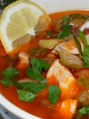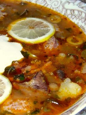 - Solyanka dans une mijoteuse avec viande, viandes fumées et champignons