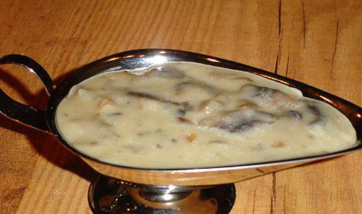 Avant de préparer une sauce de champignons séchés pour pommes de terre ou céréales, les champignons doivent être lavés, trempés, bouillis, séparés du bouillon, hachés et frits avec des oignons hachés finement. Spasseruyte farine jusqu'à rouge et ajouter chaud dans le bouillon de champignons en remuant continuellement. Salez le bouillon, faites bouillir pendant 7-10 minutes, puis combinez avec les champignons sautés.