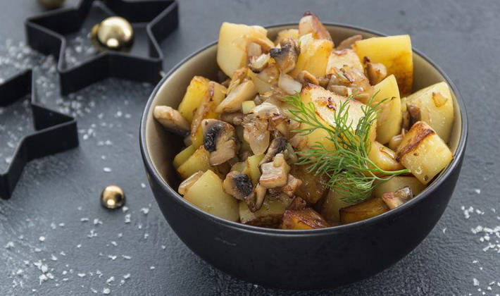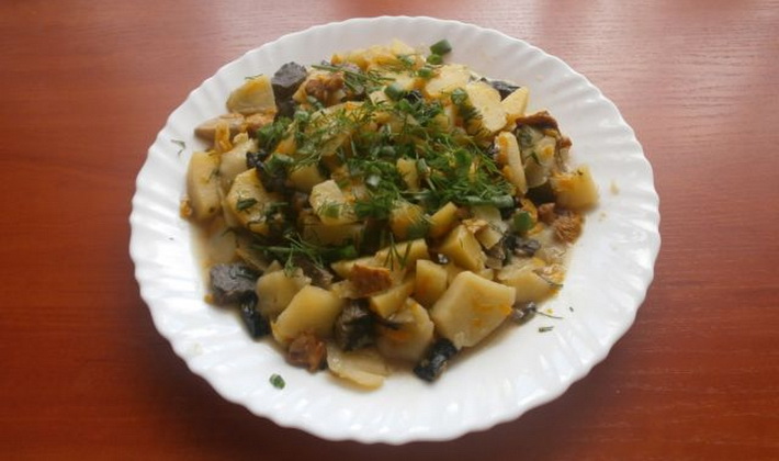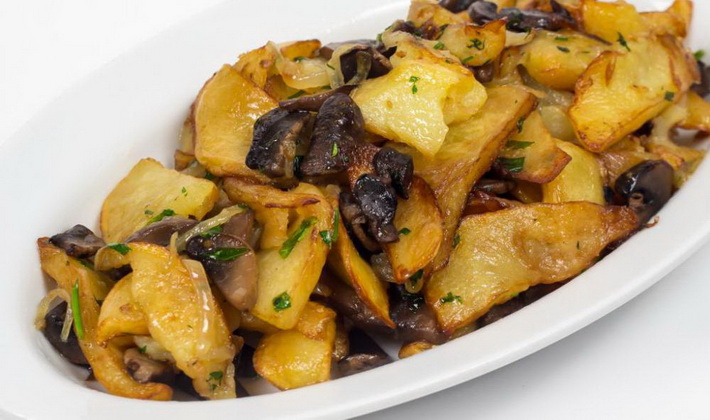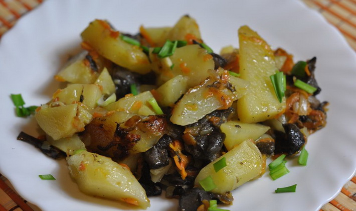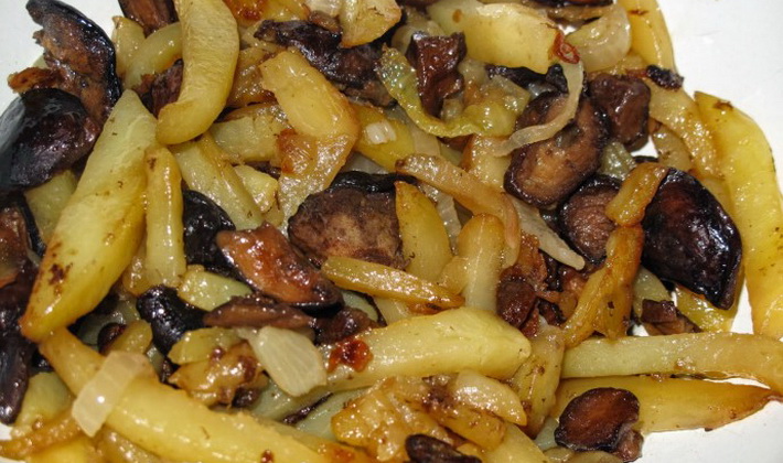 - Recettes de pommes de terre frites avec des champignons séchés dans une casserole