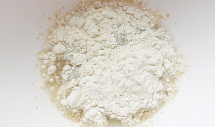 Diluez 2 cuillères à soupe de farine dans 20 ml d’eau et ajoutez-les au mélange à gâteau sans cesser de remuer.