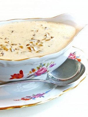 Les options suivantes se rapportent aux recettes classiques de la sauce au fromage crémeuse avec l’ajout de champignons: