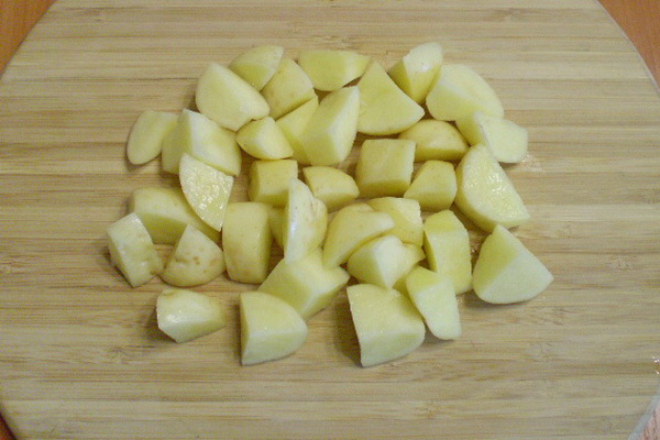 1. Lavez, épluchez, coupez les pommes de terre en lanières et disposez-les dans des pots en argile.