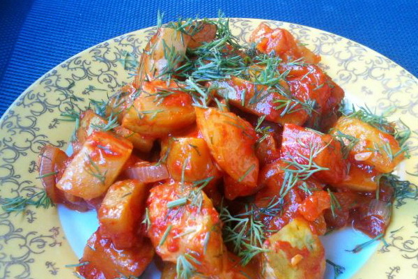 - Pommes de terre à l'étouffée avec des champignons et des carottes séchées: recette avec photo