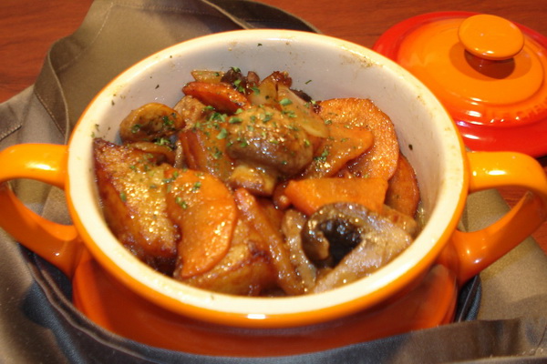 Recette de pommes de terre cuite avec des champignons séchés dans un pot