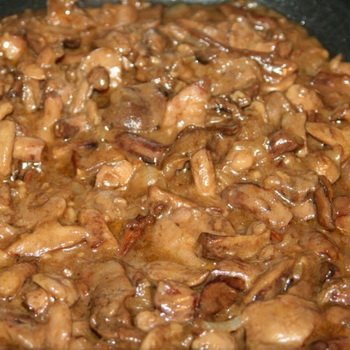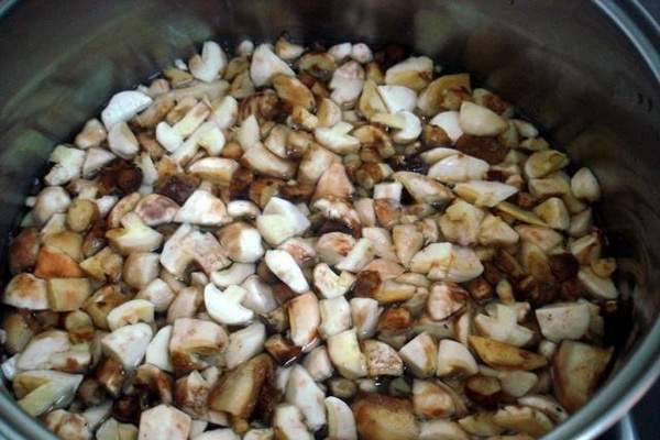 Couper les champignons préalablement bouillis en tranches, mettre l'huile végétale chaude et les faire revenir jusqu'à ce qu'ils soient dorés.
